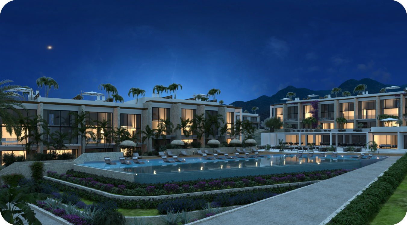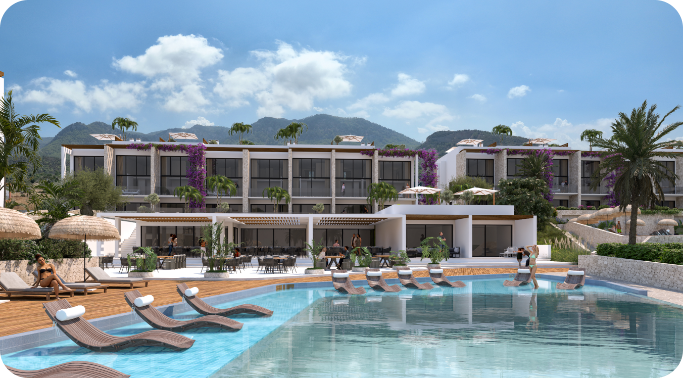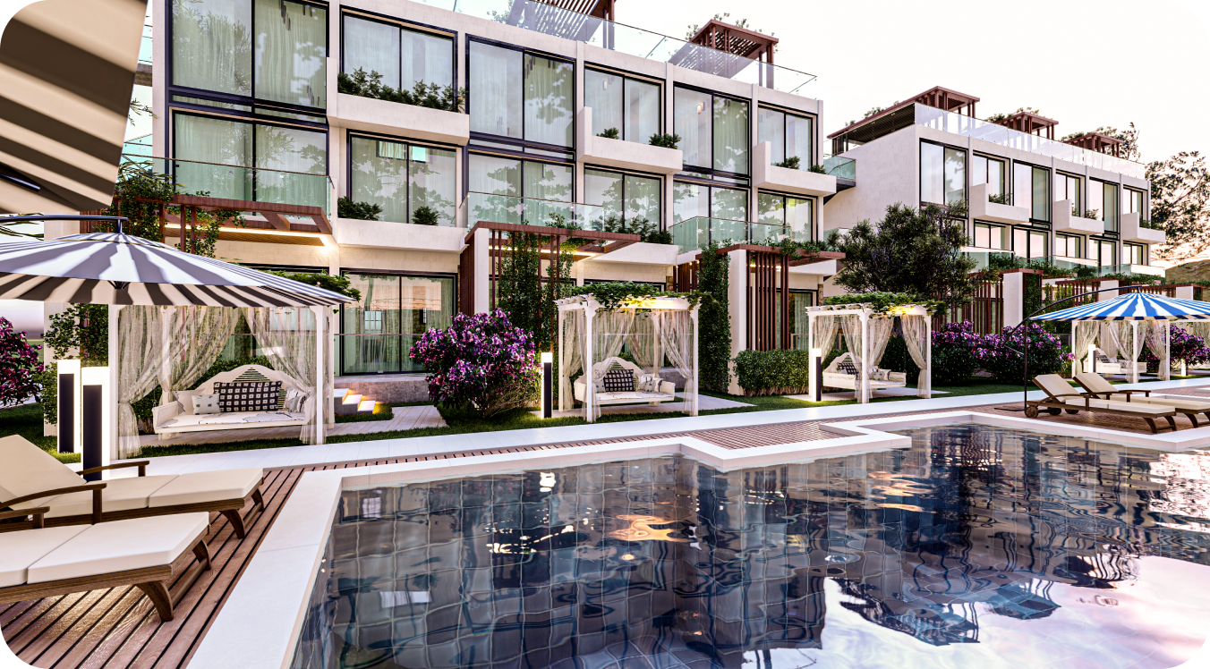 O kompleksie:Położony w bardzo poszukiwanym obszarze Esentepe na Cyprze Północnym, projekt ten otoczony jest drzewami oliwnymi, oferując mieszkańcom malownicze widoki na Morze Śródziemne i góry Kyrenia.