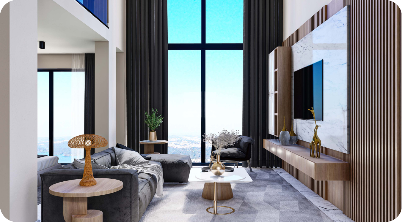 OpisProjekt położony jest w malowniczym regionie Esentepe, otoczonym górami i Morzem Śródziemnym. Kompleks łączy w sobie piękno natury, wyjątkowość krajobrazów wyspy, a jednocześnie luksus i komfort. Idealny wybór na komfortowe życie i niezapomniane wakacje.