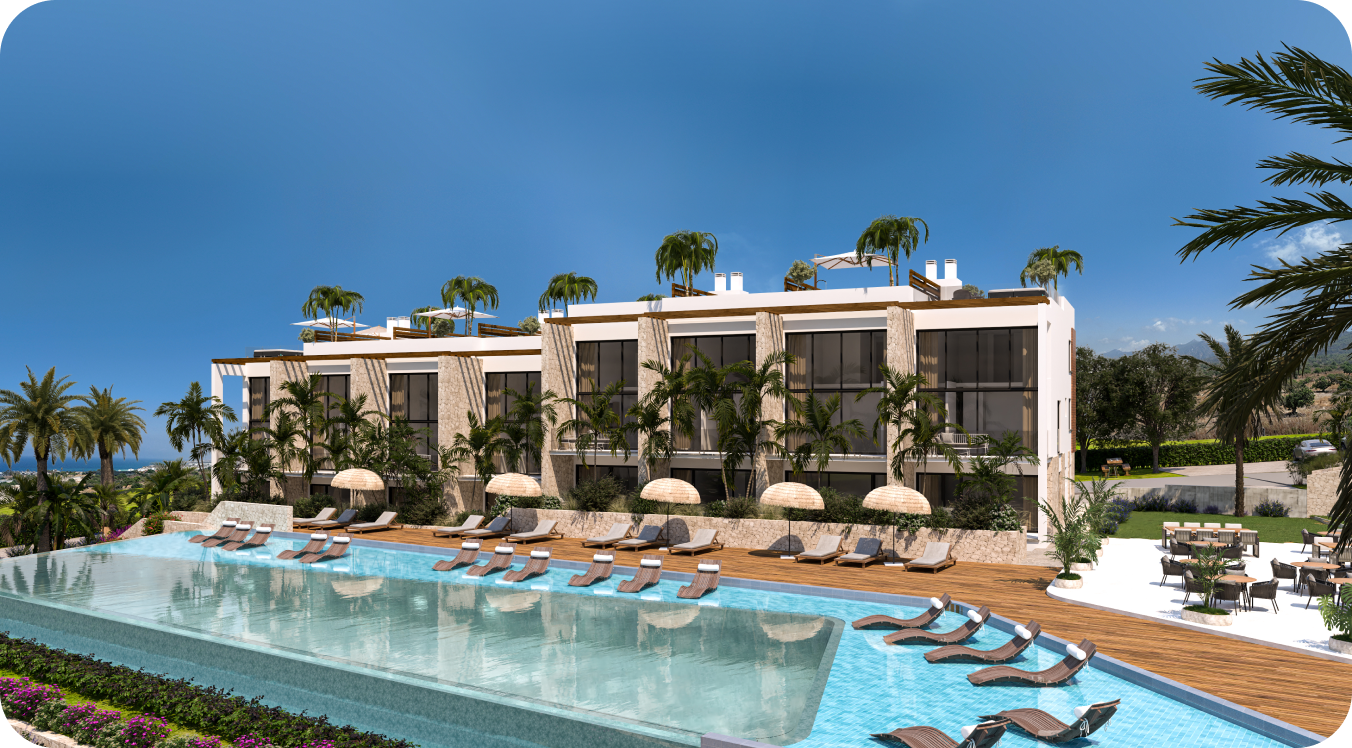 O kompleksie:Położony w bardzo poszukiwanym obszarze Esentepe na Cyprze Północnym, projekt ten otoczony jest drzewami oliwnymi, oferując mieszkańcom malownicze widoki na Morze Śródziemne i góry Kyrenia.
