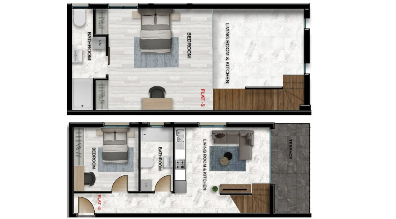 Charakterystyka nieruchomości- Typ nieruchomości: 2+1 Loft Penthouse Powierzchnia: 73m² (balkon 6m² + taras na dachu 45m²) Odległość od morza: 350 m