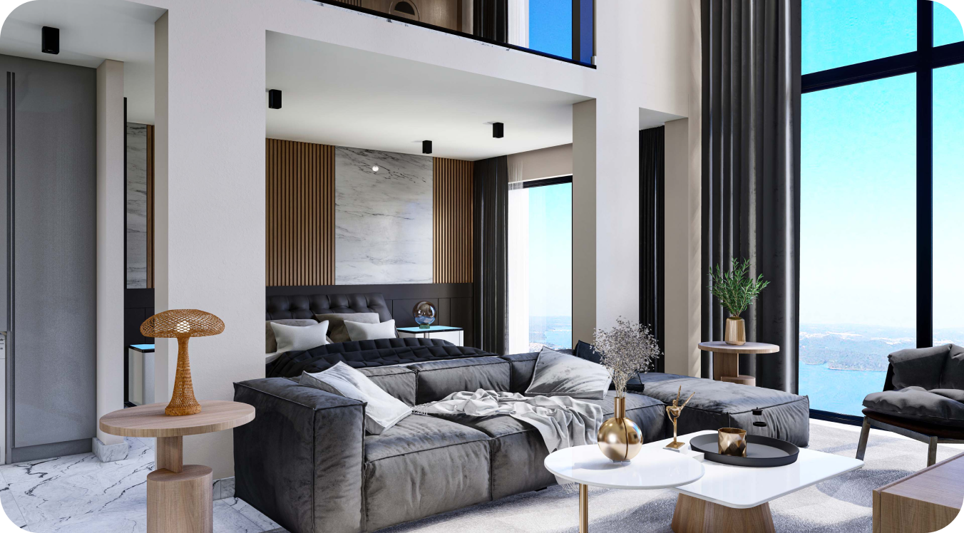 OpisProjekt położony jest w malowniczym regionie Esentepe, otoczonym górami i Morzem Śródziemnym. Kompleks łączy w sobie piękno natury, wyjątkowość krajobrazów wyspy, a jednocześnie luksus i komfort. Idealny wybór na komfortowe życie i niezapomniane wakacje.